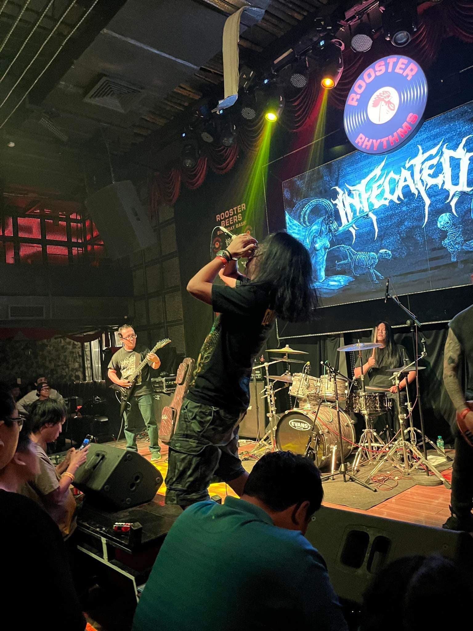 With the first full length album “Predictable Death” released in April 2024, the Vietnamese flag-bearing death metal quintet Infecated will celebrate their 5th year in existence with ferocious grace. Founded from the ashes of the death/thrash outfit Onslave, the band solidifies their position in the microseismic metal scene of Vietnam with their crystallised vision of old-school 90s death metal sensibilities (think of Death, early Cannibal Corpse, Malevolent Creation) and catalysed by an extreme passion for playing extreme music live. After a series of singles and a split EP with the Japanese veteran Taste (released via Bloodbath Records/JPN), Infecated has grown into a local metallic finesse to offer to both local fans and international touring artists to the scene alike - in 2019 they have supported the ultimate legendary Cryptopsy (again in 2023) and Slaughter to Prevail in Vietnam while a regular name at the now-defunct Hanoian underground beacon of Hai Ba Trung Deathfest. With a remarkably consistent lineup featured three original founding members, the gang of Tăng Cường (guitar), Phúc Hưng (guitar), Nguyễn An (bass), Anh Đức (drums), and Mạnh Toàn (vocals) play to the public the aggressive music they themselves want to hear.